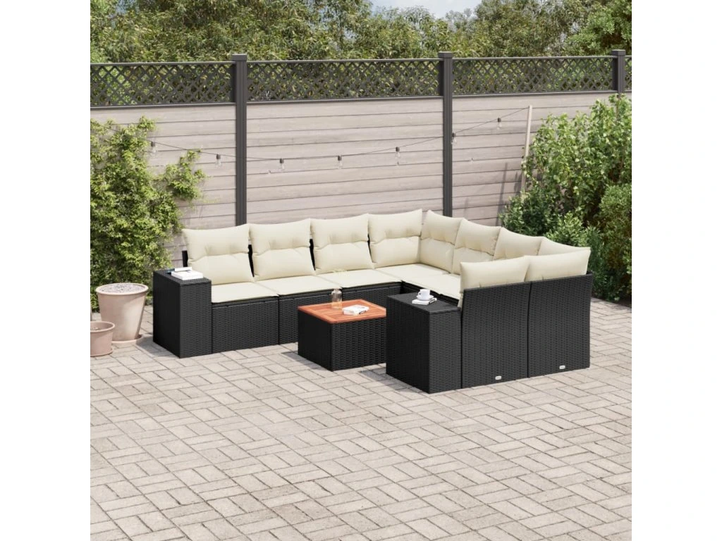 9dílná zahradní sedací souprava s poduškami černá polyratan 3257701