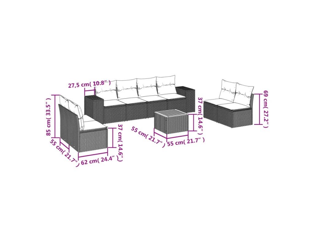 Tato zahradní sedací souprava je dokonalým doplňkem vaší zahrady, terasy nebo dvorku a poskytne vám pohodlné a příjemné místo, kde si můžete povídat s rodinou a přáteli nebo jen tak odpočívat a užívat si pobyt venku.