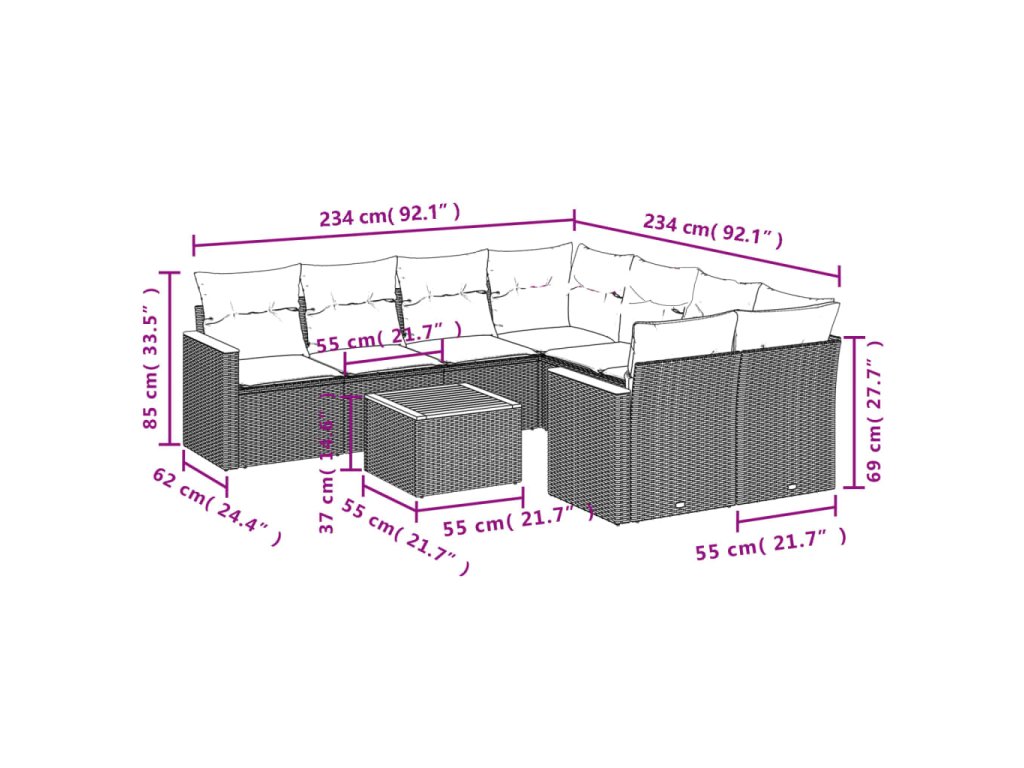 9dílná zahradní sedací souprava s poduškami černá polyratan 3258226