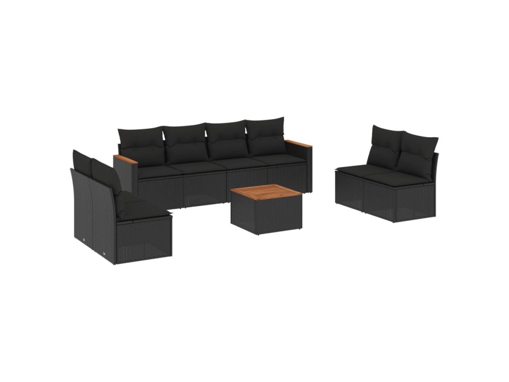 9dílná zahradní sedací souprava s poduškami černá polyratan 3258296