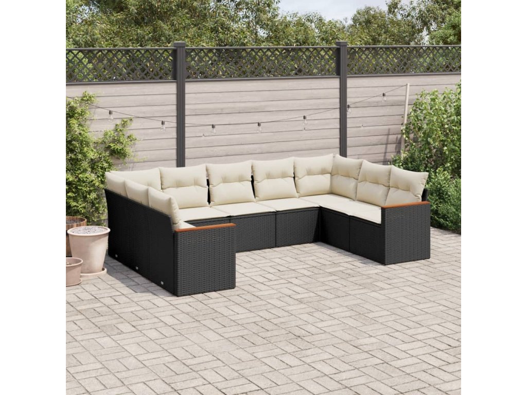 9dílná zahradní sedací souprava s poduškami černá polyratan 3258675