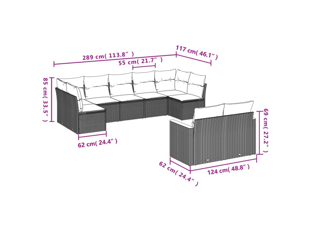 9dílná zahradní sedací souprava s poduškami černá polyratan 3258689