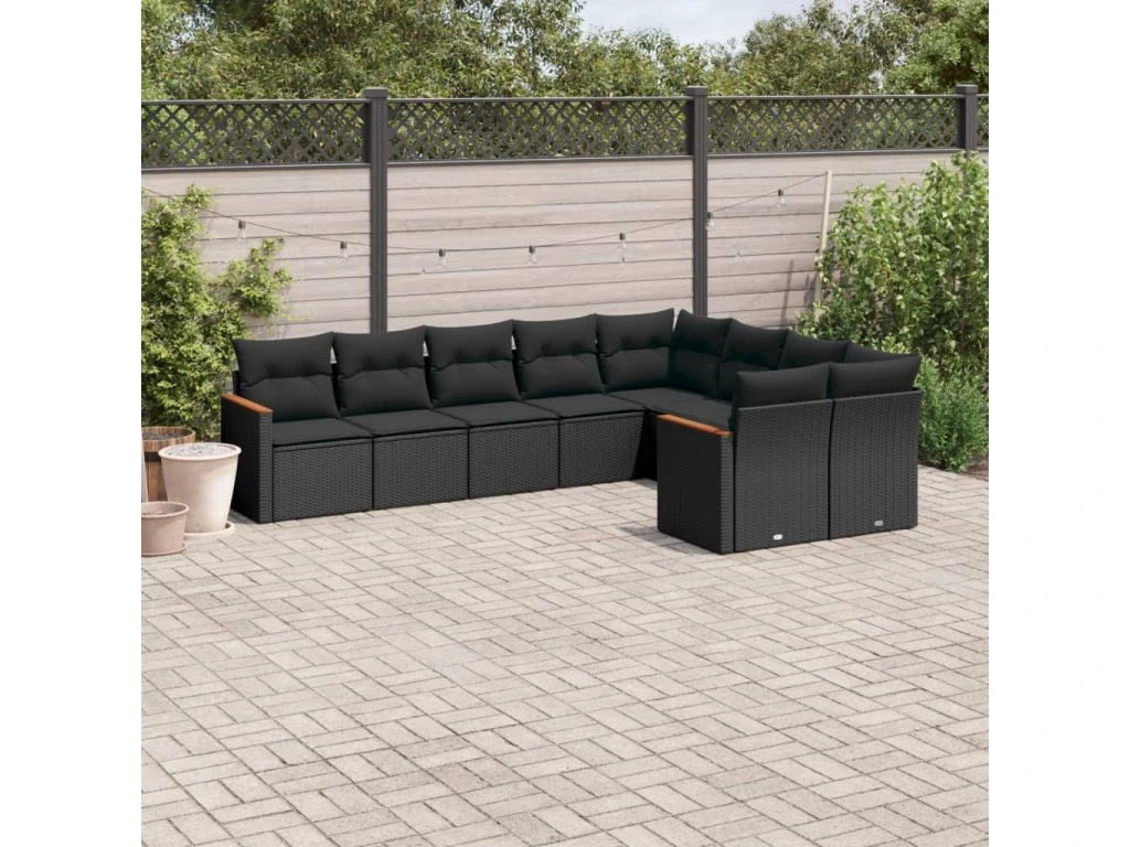 9dílná zahradní sedací souprava s poduškami černá polyratan 3258702