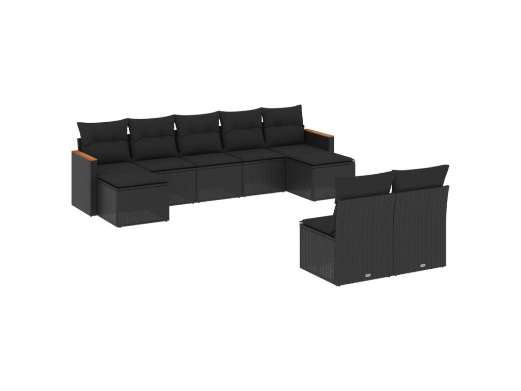 9dílná zahradní sedací souprava s poduškami černá polyratan 3258772