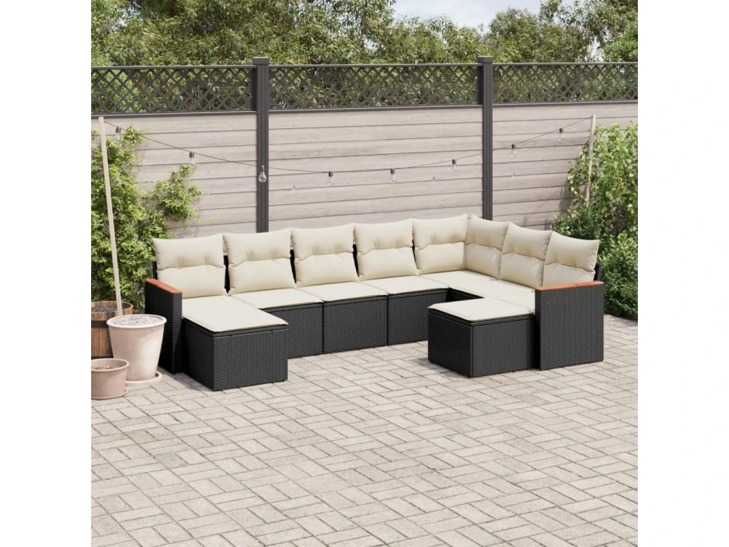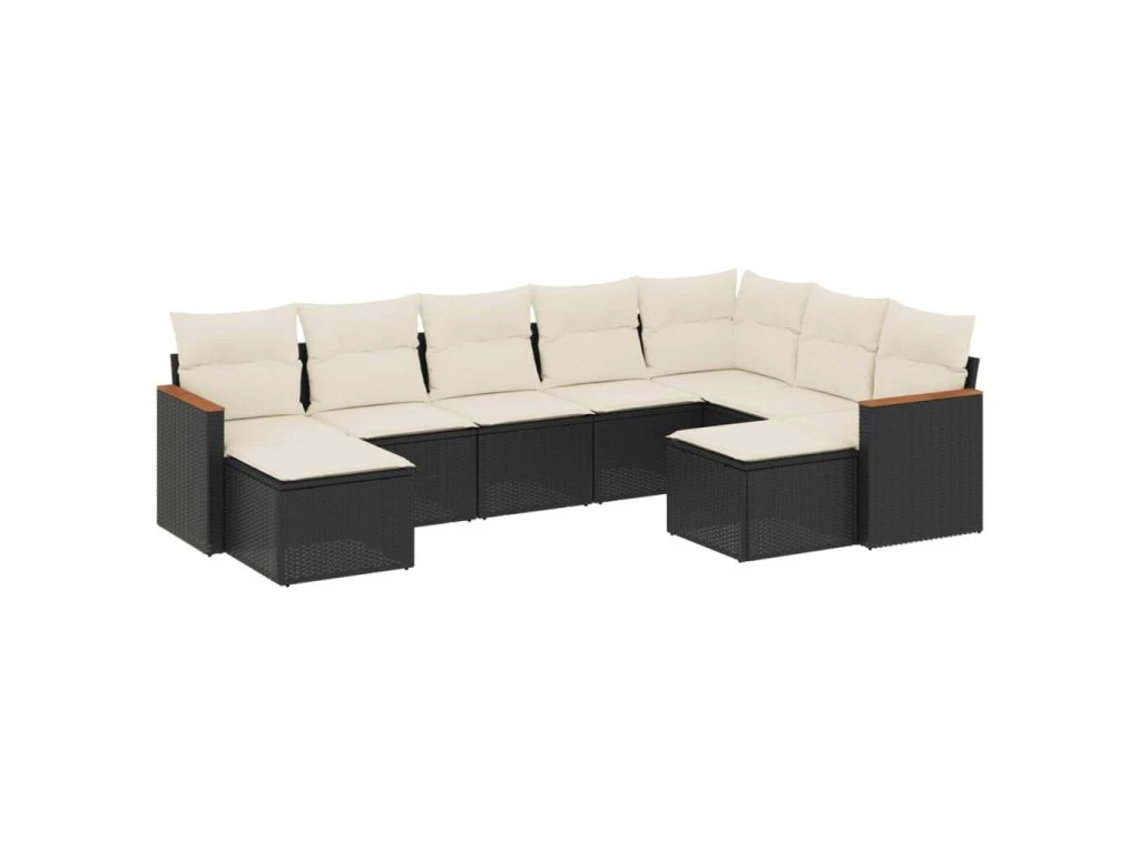 9dílná zahradní sedací souprava s poduškami černá polyratan 3258941