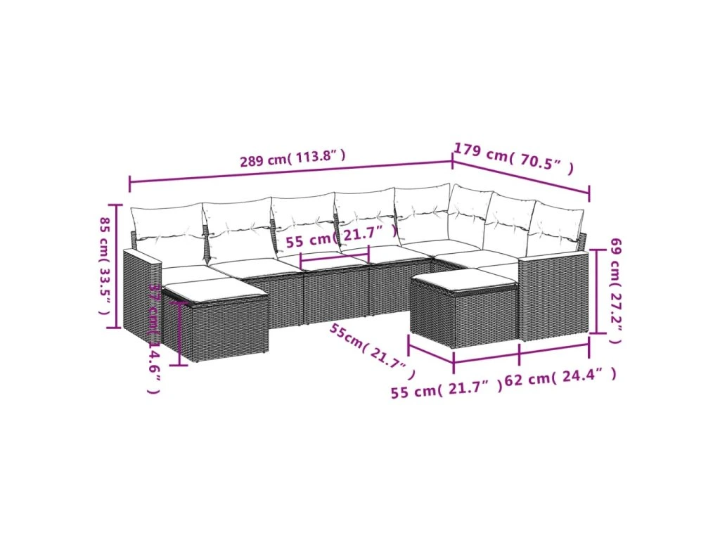 Tato zahradní sedací souprava je dokonalým doplňkem vaší zahrady, terasy nebo dvorku a poskytne vám pohodlné a příjemné místo, kde si můžete povídat s rodinou a přáteli nebo jen tak odpočívat a užívat si pobyt venku.