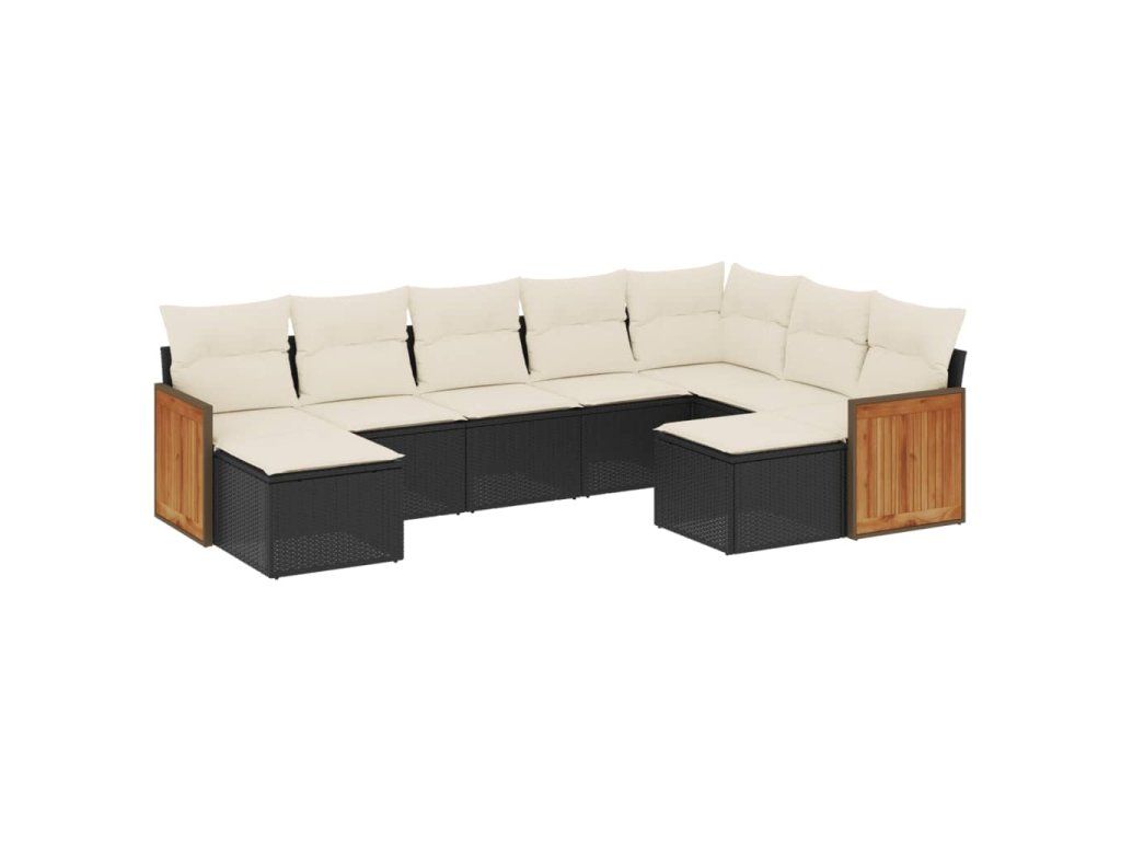 9dílná zahradní sedací souprava s poduškami černá polyratan 3260621