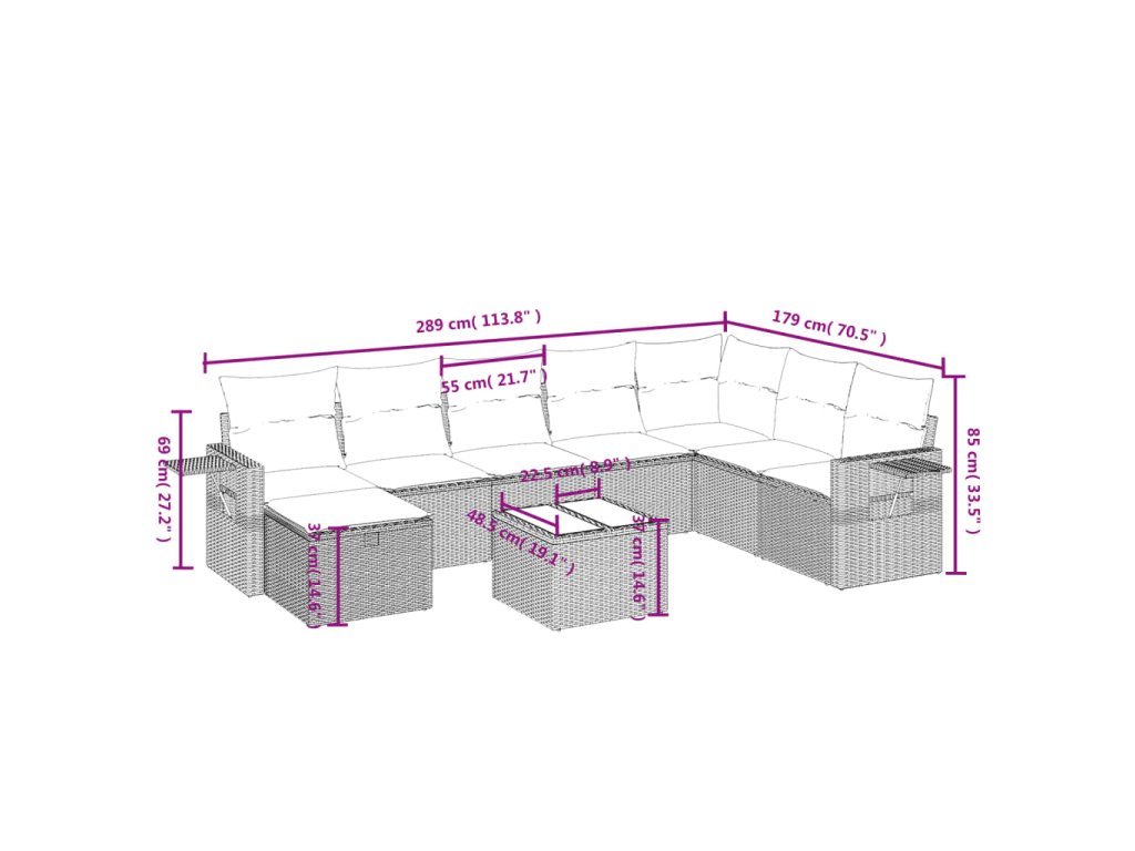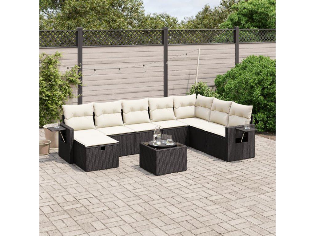 9dílná zahradní sedací souprava s poduškami černá polyratan 3263902