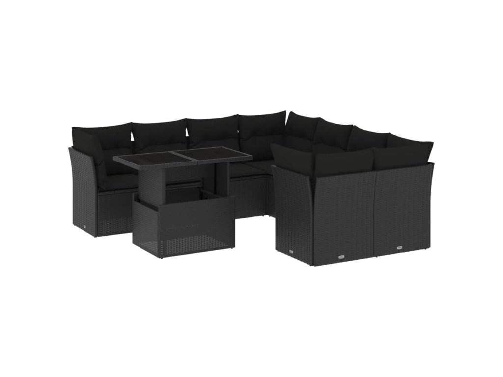 9dílná zahradní sedací souprava s poduškami černá polyratan 3266425