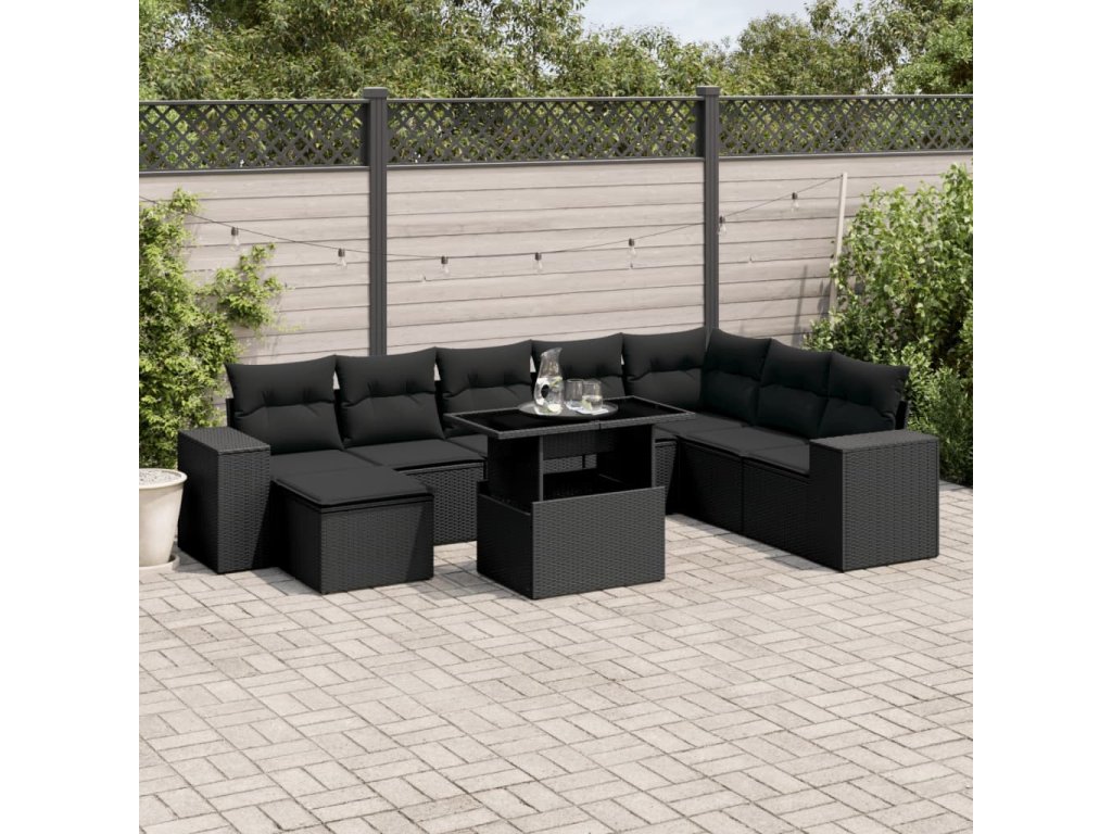 9dílná zahradní sedací souprava s poduškami černá polyratan 3269355