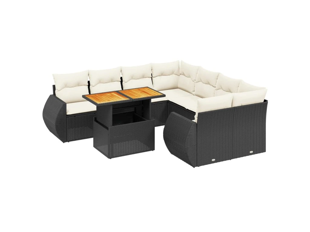 9dílná zahradní sedací souprava s poduškami černá polyratan 3272120