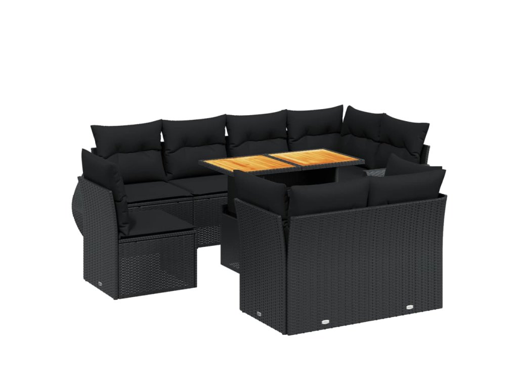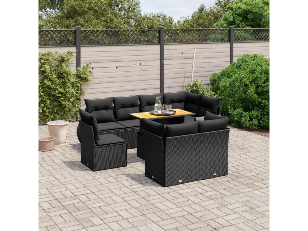 9dílná zahradní sedací souprava s poduškami černá polyratan 3272287