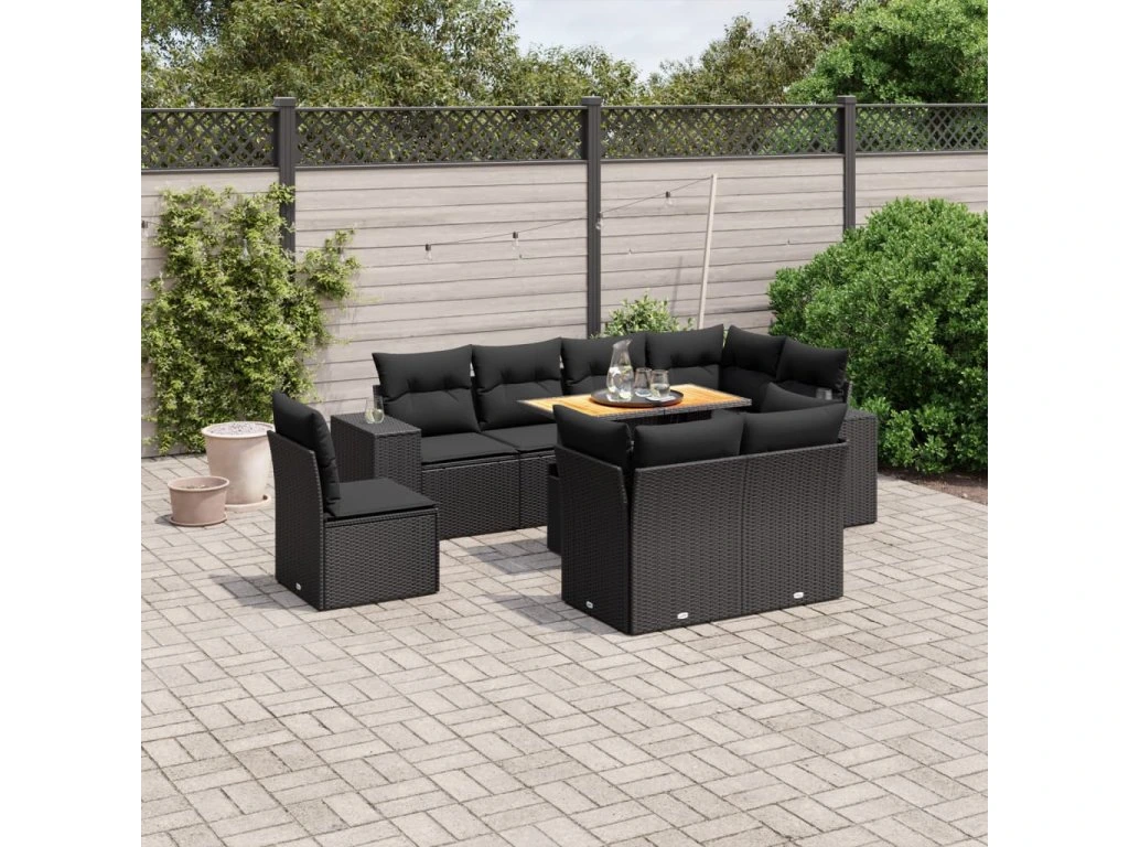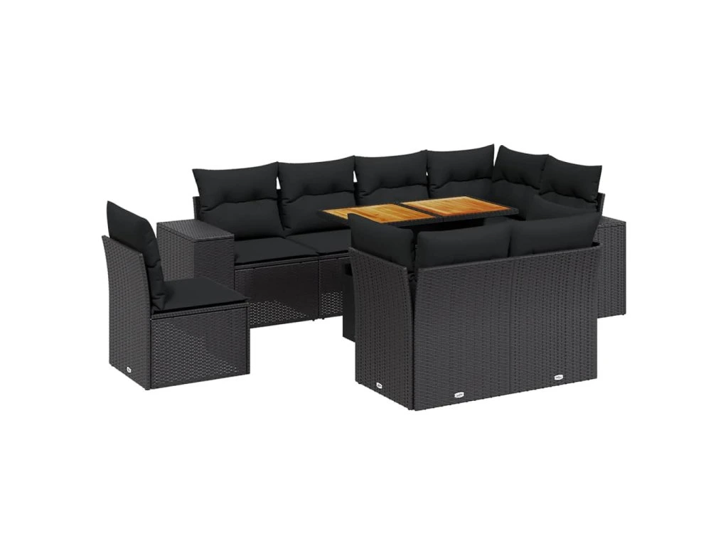 9dílná zahradní sedací souprava s poduškami černá polyratan 3272728