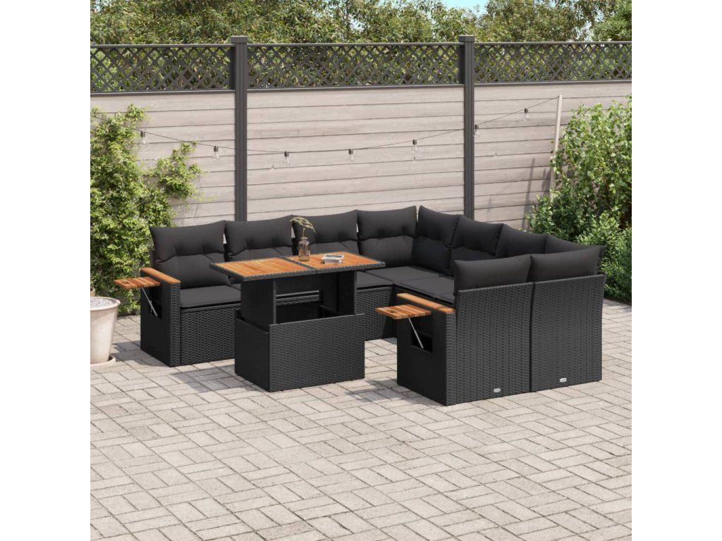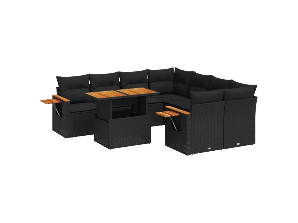 9dílná zahradní sedací souprava s poduškami černá polyratan 3273442