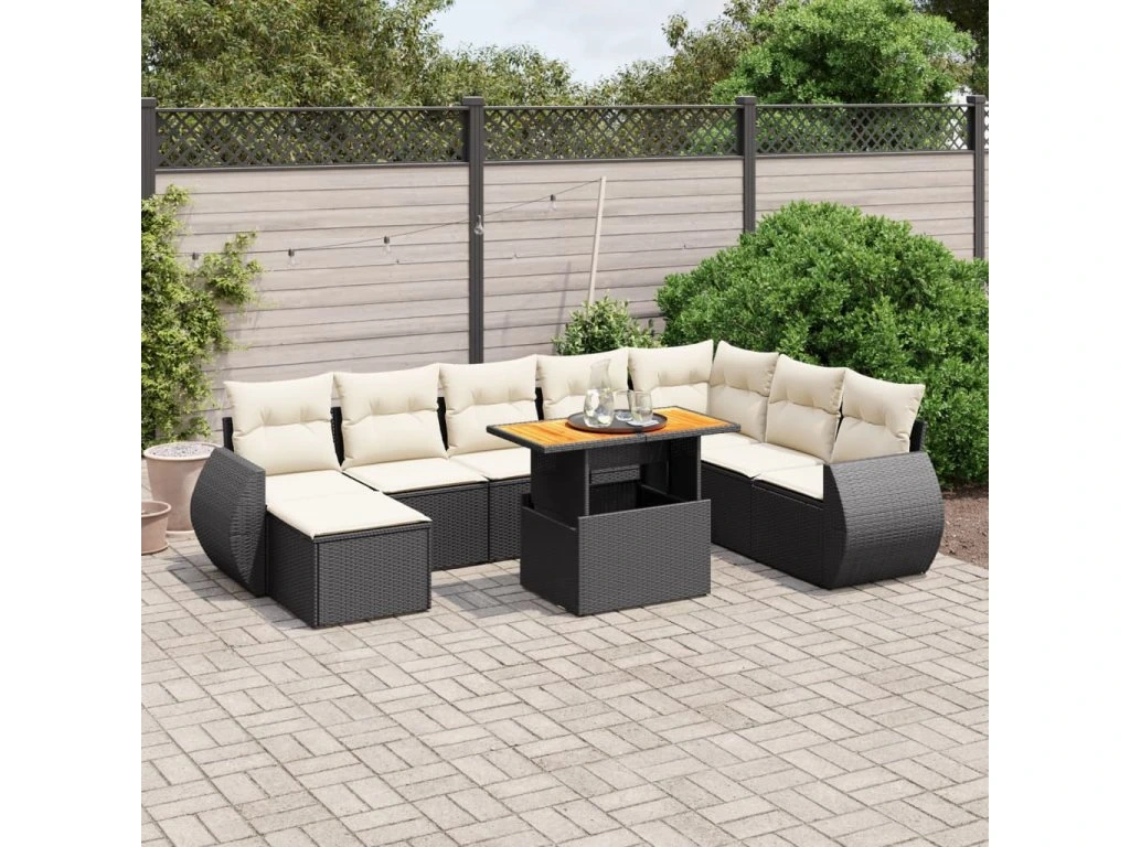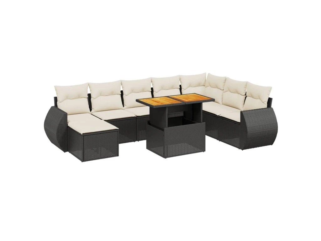 9dílná zahradní sedací souprava s poduškami černá polyratan 3275849