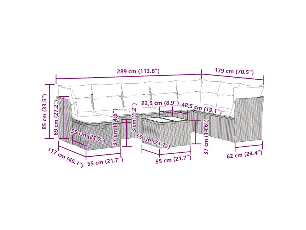 Tato zahradní sedací souprava je dokonalým doplňkem vaší zahrady, terasy nebo dvorku a poskytne vám pohodlné a příjemné místo, kde si můžete povídat s rodinou a přáteli nebo jen tak odpočívat a užívat si pobyt venku.