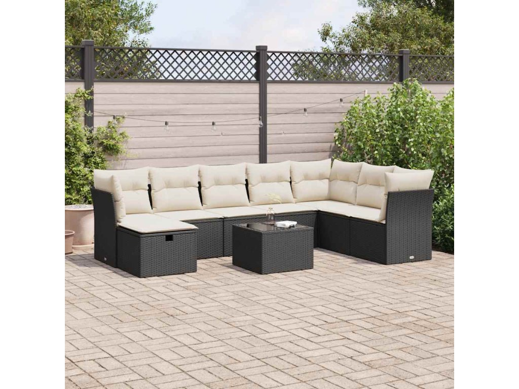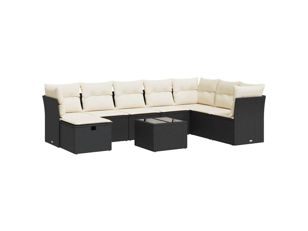 9dílná zahradní sedací souprava s poduškami černá polyratan 3325342