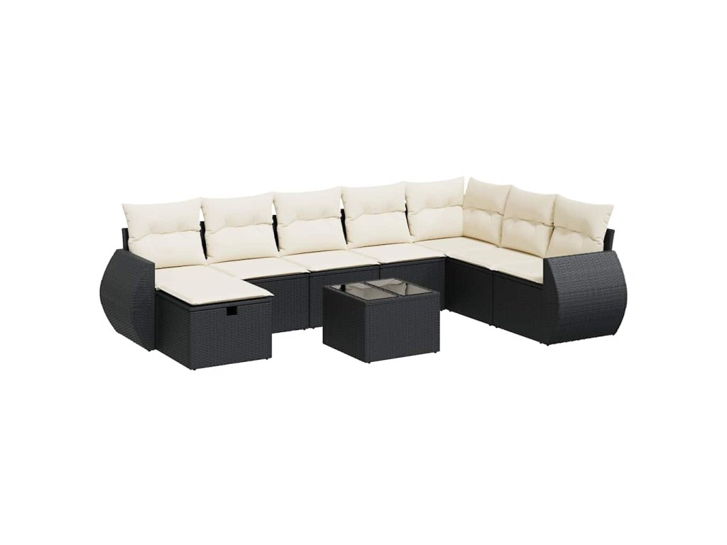 9dílná zahradní sedací souprava s poduškami černá polyratan 3325642