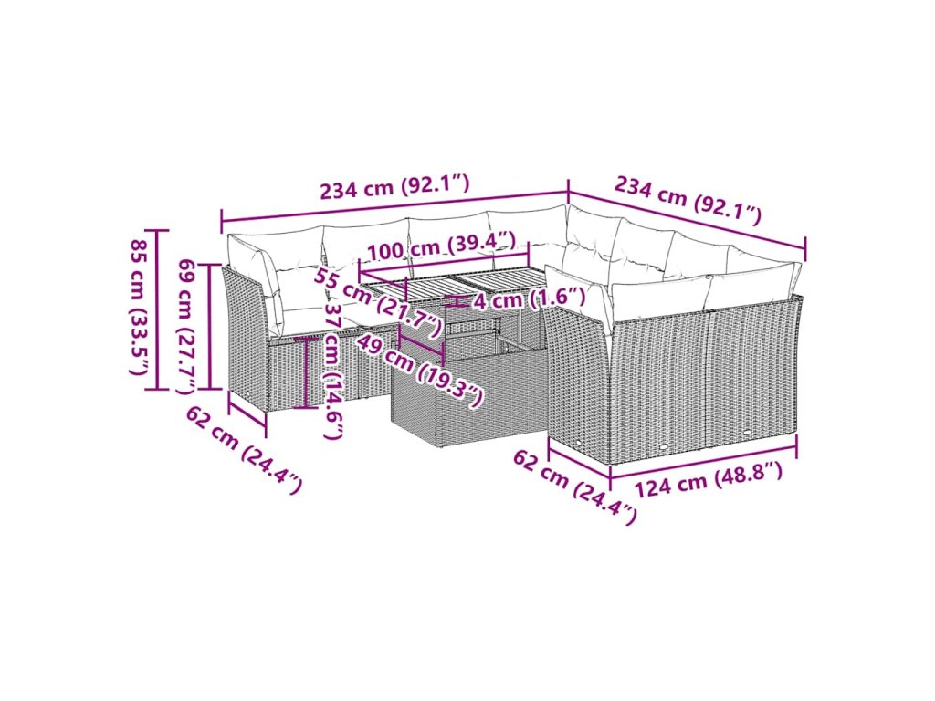 Tato zahradní sedací souprava je dokonalým doplňkem vaší zahrady, terasy nebo dvorku a poskytne vám pohodlné a příjemné místo, kde si můžete povídat s rodinou a přáteli nebo jen tak odpočívat a užívat si pobyt venku.
