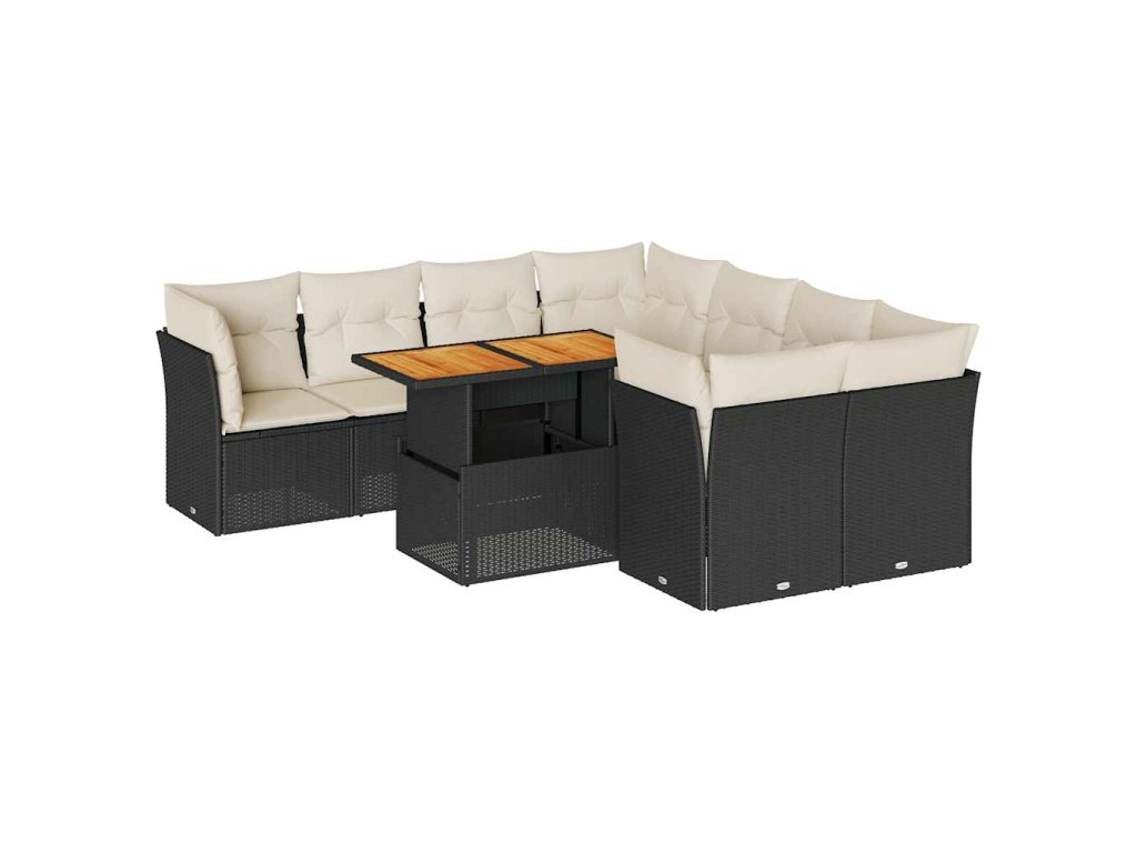 9dílná zahradní sedací souprava s poduškami černá polyratan 3326905