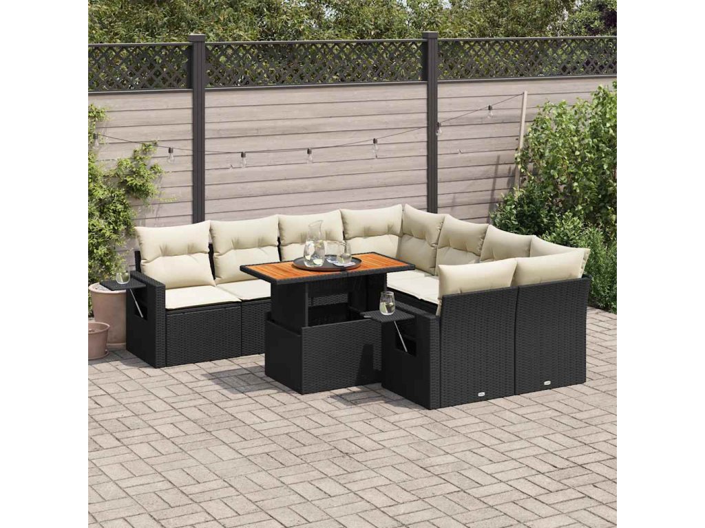 9dílná zahradní sedací souprava s poduškami černá polyratan 3327129