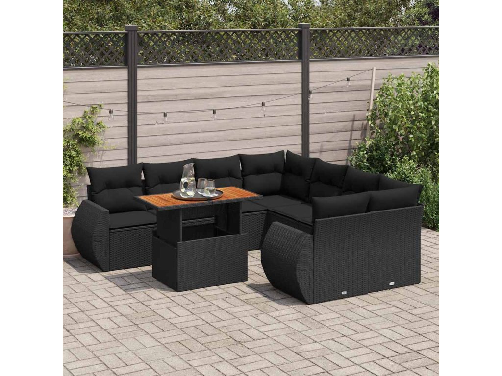 9dílná zahradní sedací souprava s poduškami černá polyratan 3327240