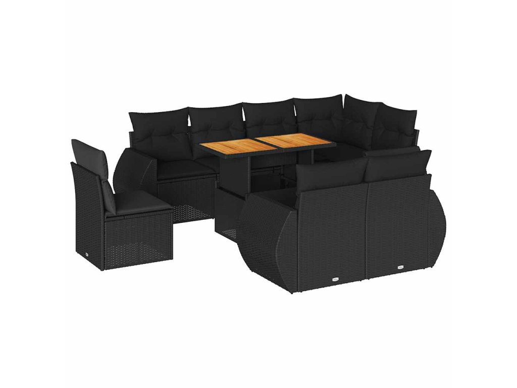 9dílná zahradní sedací souprava s poduškami černá polyratan 3327275