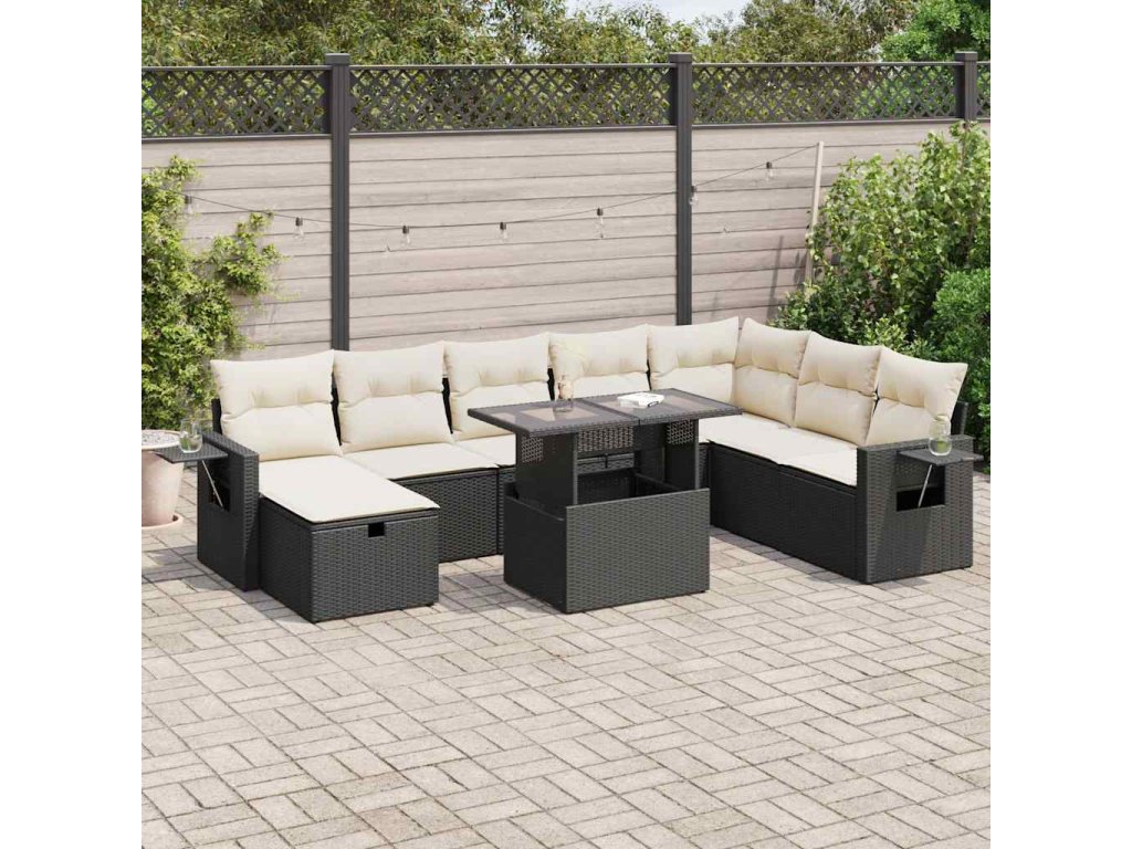 9dílná zahradní sedací souprava s poduškami černá polyratan 3327876
