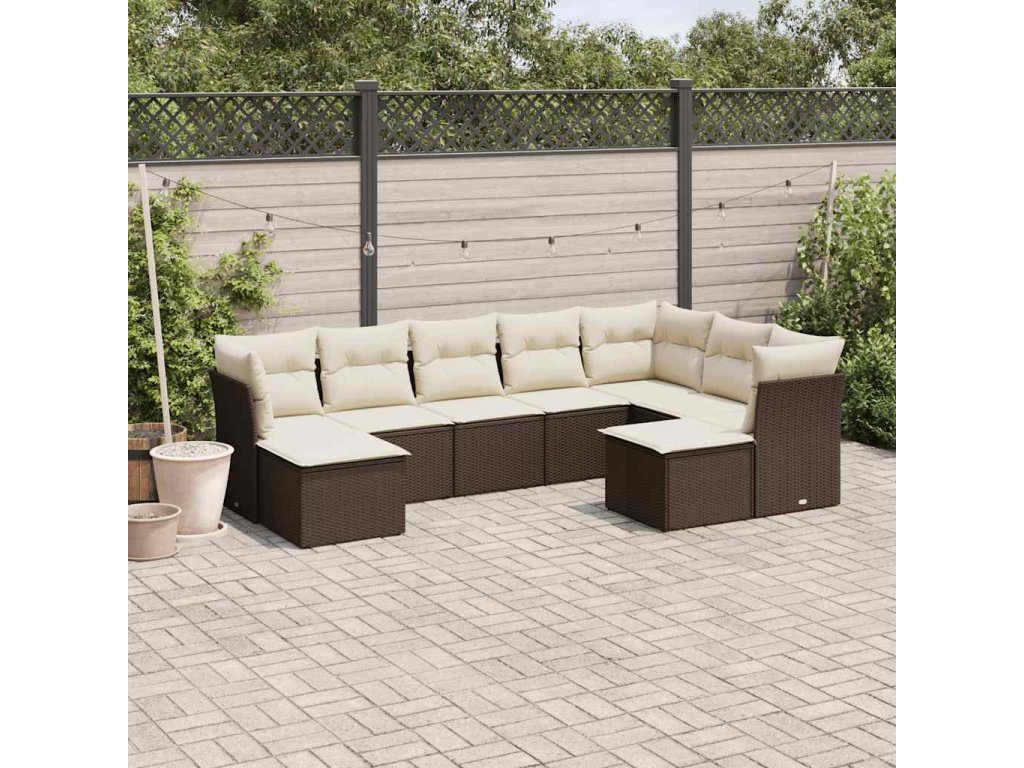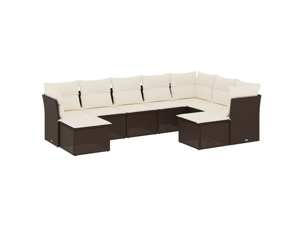 9dílná zahradní sedací souprava s poduškami hnědá polyratan 3218573