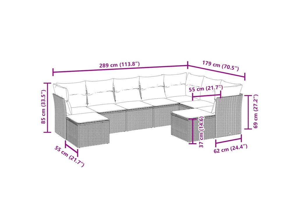 Tato zahradní sedací souprava je dokonalým doplňkem vaší zahrady, terasy nebo dvorku a poskytne vám pohodlné a příjemné místo, kde si můžete povídat s rodinou a přáteli nebo jen tak odpočívat a užívat si pobyt venku.