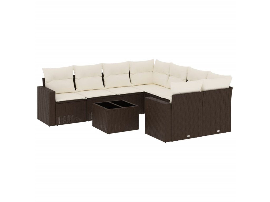 9dílná zahradní sedací souprava s poduškami hnědá polyratan 3218753