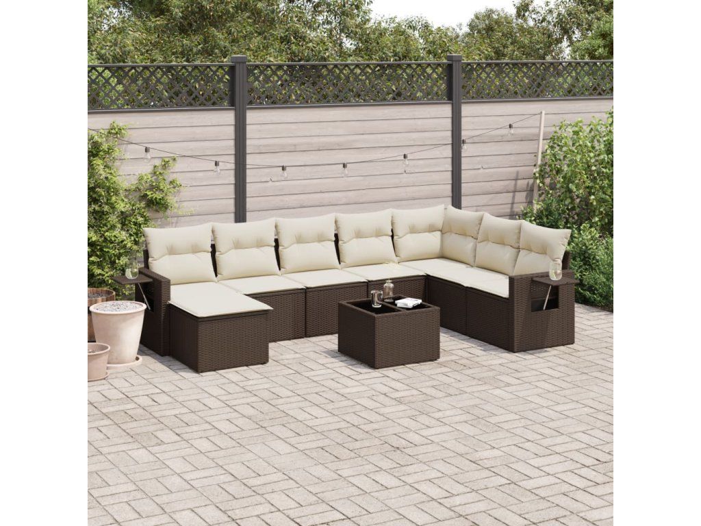 9dílná zahradní sedací souprava s poduškami hnědá polyratan 3220572
