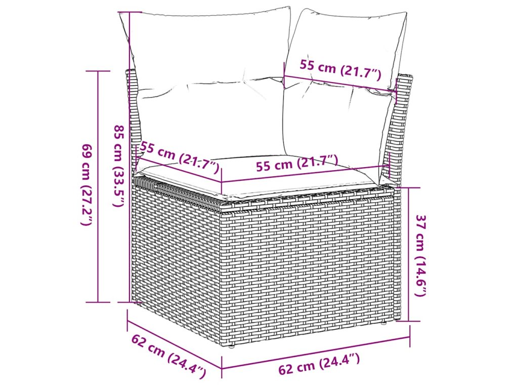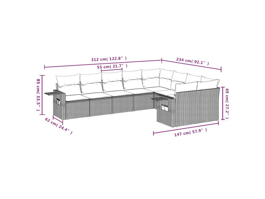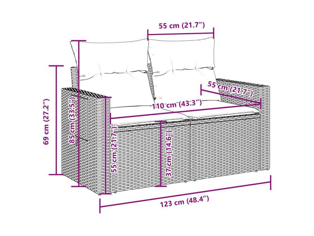 Tato zahradní sedací souprava je dokonalým doplňkem vaší zahrady, terasy nebo dvorku a poskytne vám pohodlné a příjemné místo, kde si můžete povídat s rodinou a přáteli nebo jen tak odpočívat a užívat si pobyt venku.