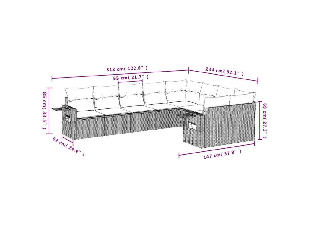 9dílná zahradní sedací souprava s poduškami hnědá polyratan 3220642