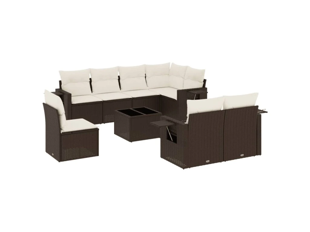 9dílná zahradní sedací souprava s poduškami hnědá polyratan 3252790