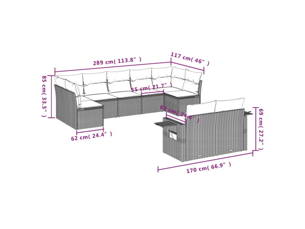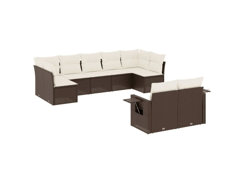 9dílná zahradní sedací souprava s poduškami hnědá polyratan 3252960