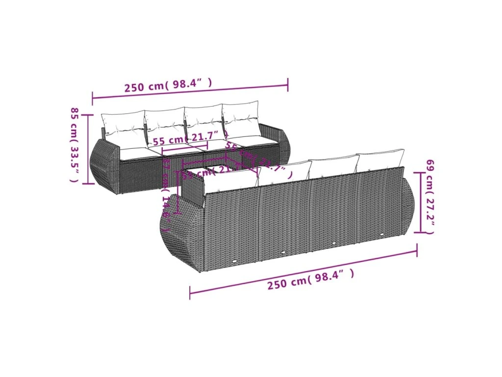 Tato zahradní sedací souprava je dokonalým doplňkem vaší zahrady, terasy nebo dvorku a poskytne vám pohodlné a příjemné místo, kde si můžete povídat s rodinou a přáteli nebo jen tak odpočívat a užívat si pobyt venku.