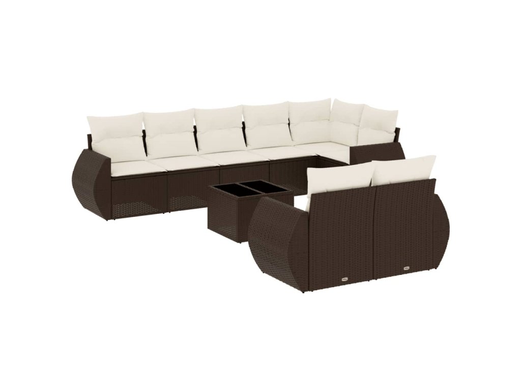 9dílná zahradní sedací souprava s poduškami hnědá polyratan 3253970