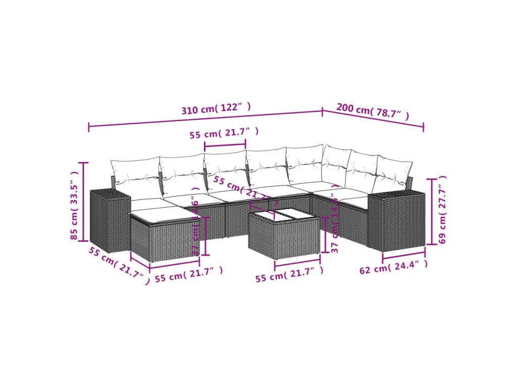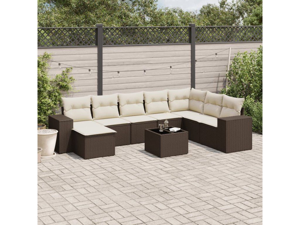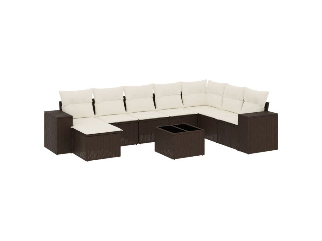 9dílná zahradní sedací souprava s poduškami hnědá polyratan 3255310