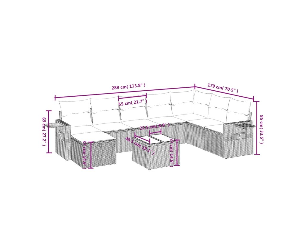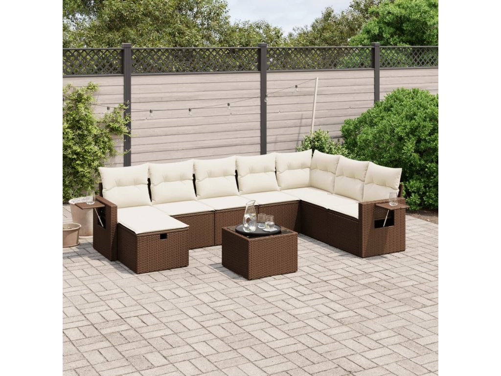 9dílná zahradní sedací souprava s poduškami hnědá polyratan 3263909