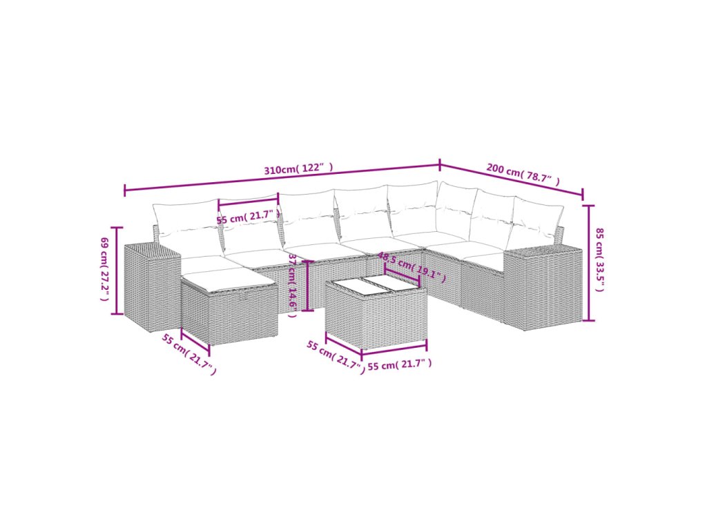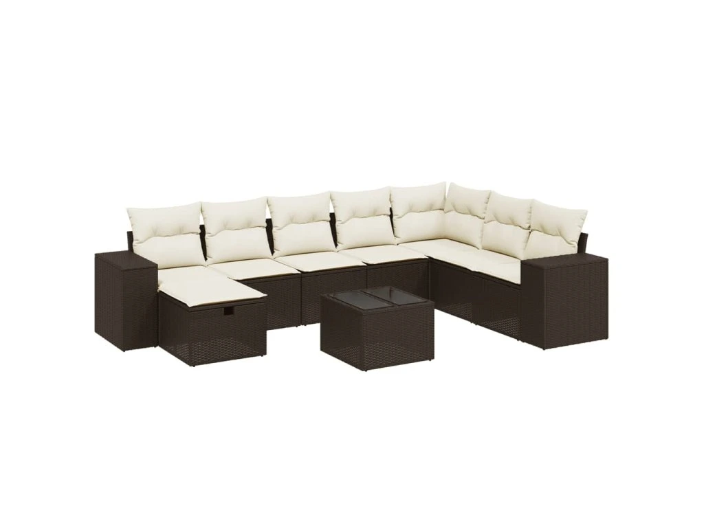 9dílná zahradní sedací souprava s poduškami hnědá polyratan 3264529