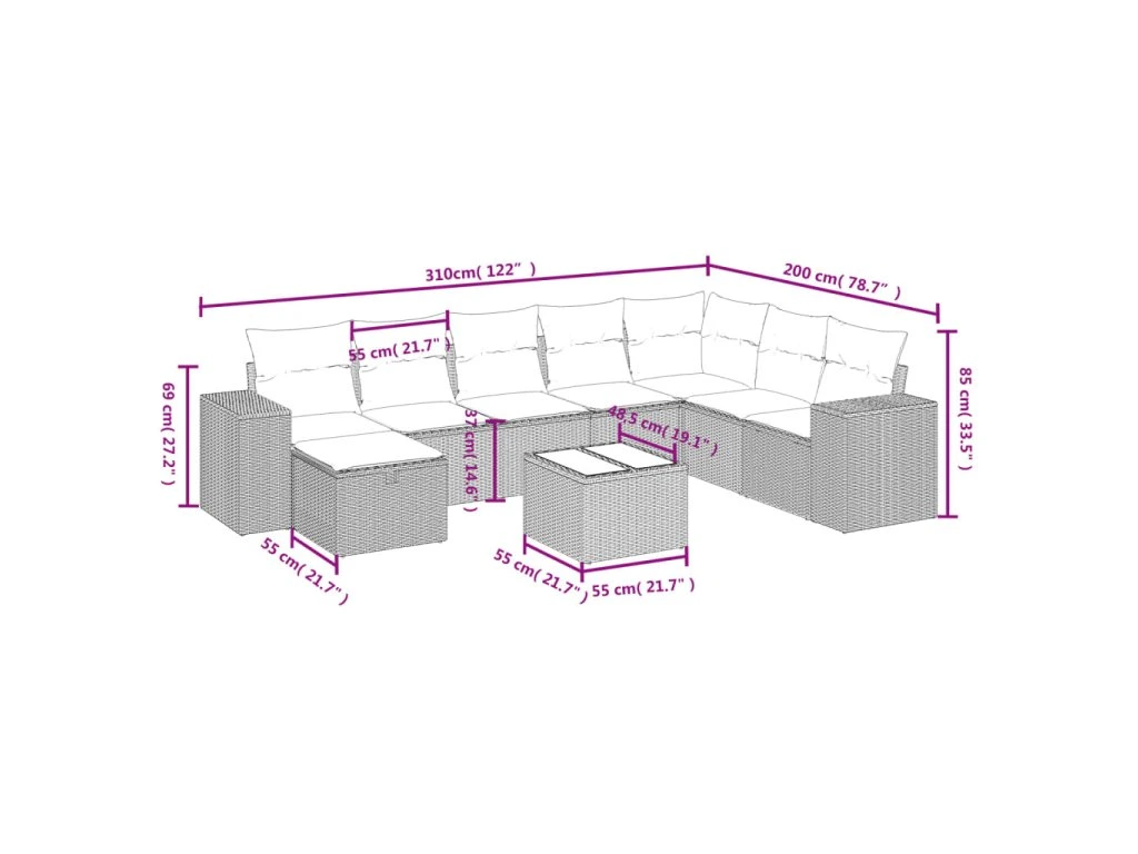 Tato zahradní sedací souprava je dokonalým doplňkem vaší zahrady, terasy nebo dvorku a poskytne vám pohodlné a příjemné místo, kde si můžete povídat s rodinou a přáteli nebo jen tak odpočívat a užívat si pobyt venku.