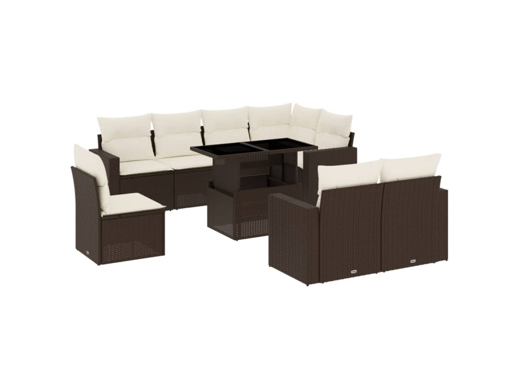 9dílná zahradní sedací souprava s poduškami hnědá polyratan 3267413