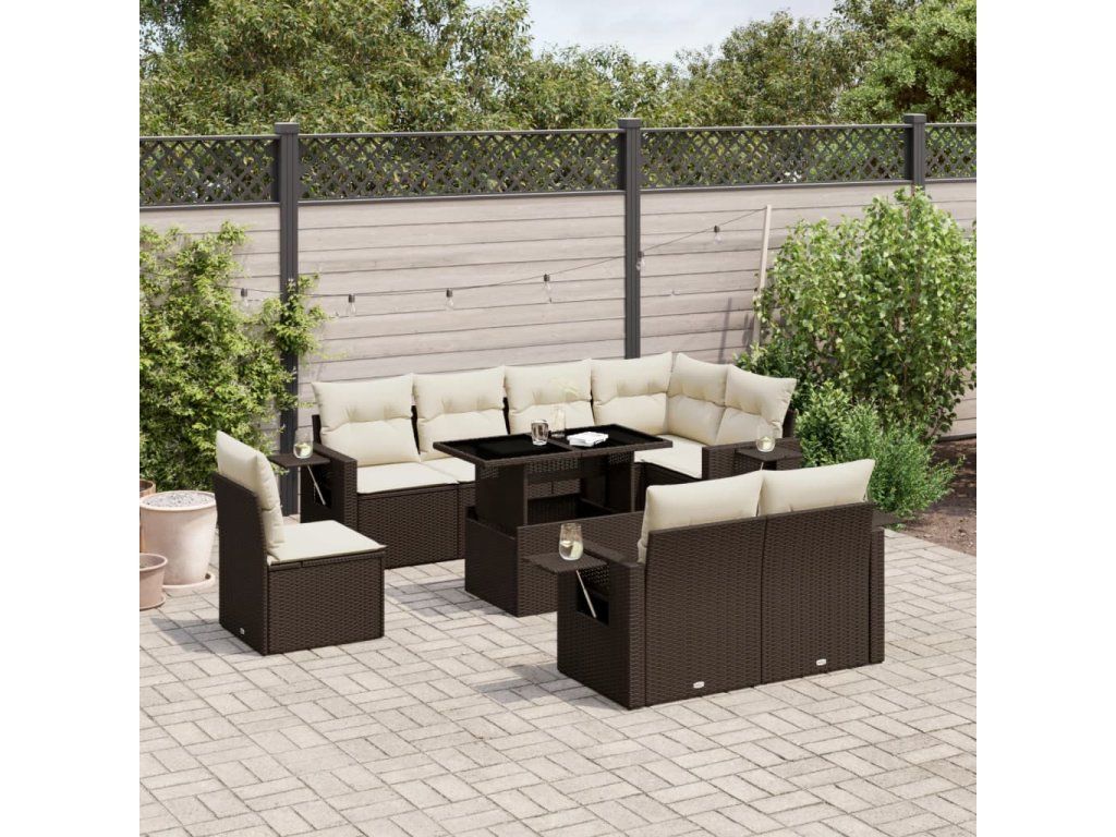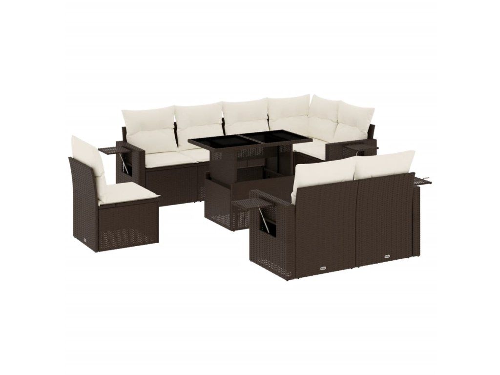 9dílná zahradní sedací souprava s poduškami hnědá polyratan 3268043