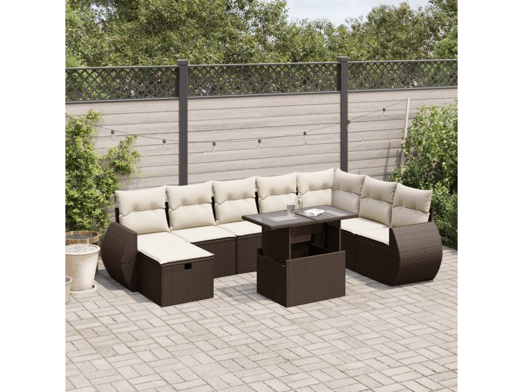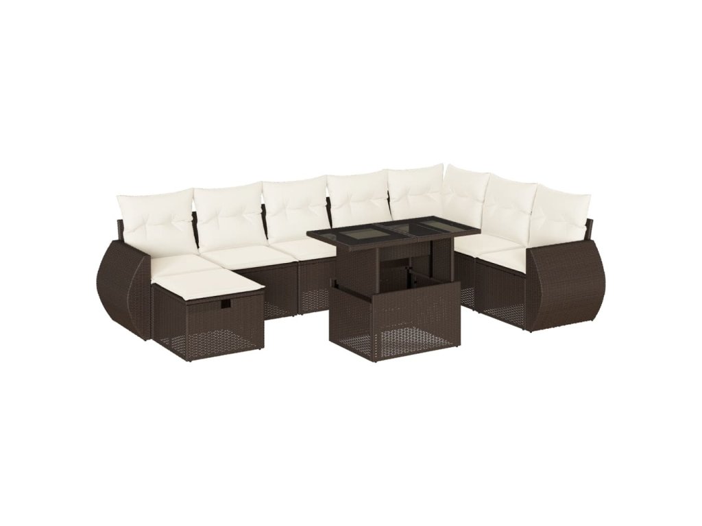 9dílná zahradní sedací souprava s poduškami hnědá polyratan 3275193