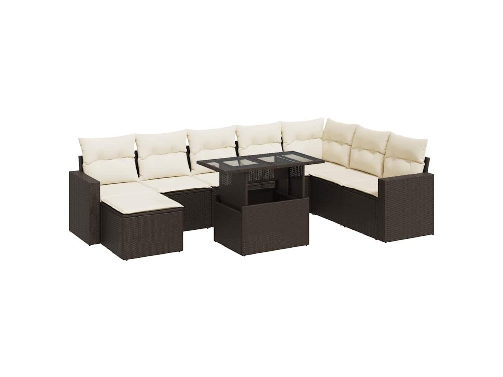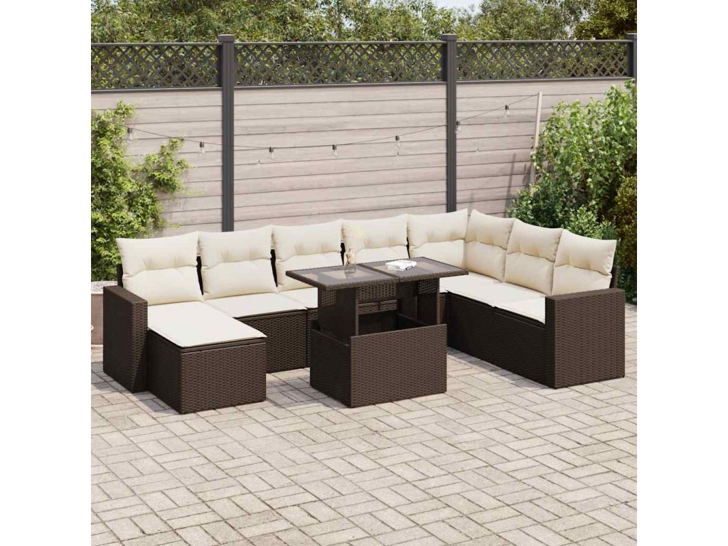 9dílná zahradní sedací souprava s poduškami hnědá polyratan 3326374