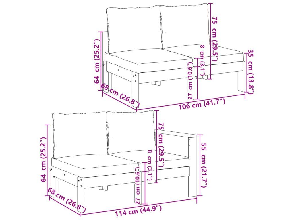 - Modulární design: Tato sada venkovního nábytku se vyznačuje modulární konstrukcí, je tedy zcela flexibilní a lze ji snadno přemisťovat, takže si můžete uspořádat venkovní nábytek dle vašich potřeb.