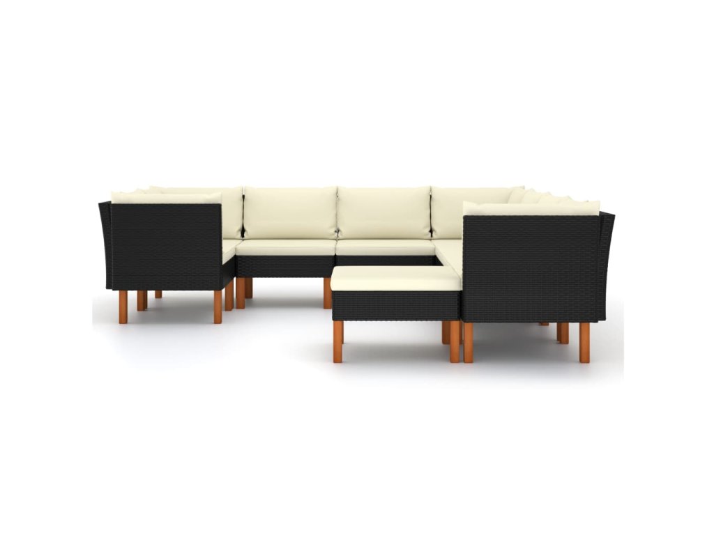 9dílná zahradní sedací souprava s poduškami polyratan černá 3059744