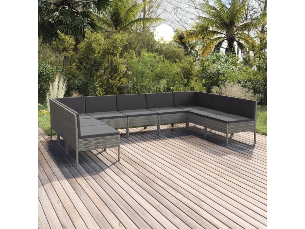 9dílná zahradní sedací souprava s poduškami polyratan šedá 3094598