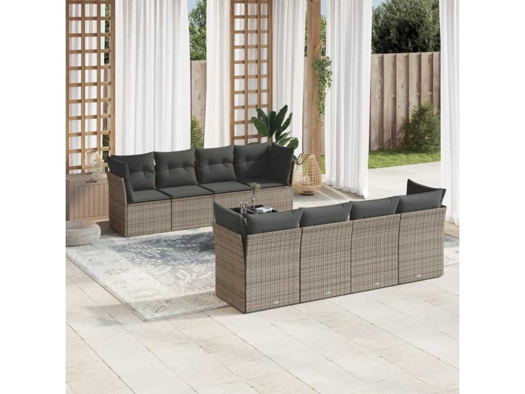 9dílná zahradní sedací souprava s poduškami šedá polyratan 3217310